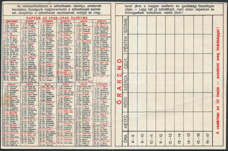 1942 Iskolaszövetkezeti naptárórarend, rajta "Hangya" és más reklámos ... https://www.darabanth.com/de/254-Fernauktion/254.0/Andere-Sammelgebiete/Drucksachen~400010/1942-Iskolaszovetkezeti-naptarorarend-rajta-Hangya-es-mas-reklamos-szovegekkel-kitoltetl~II1236181