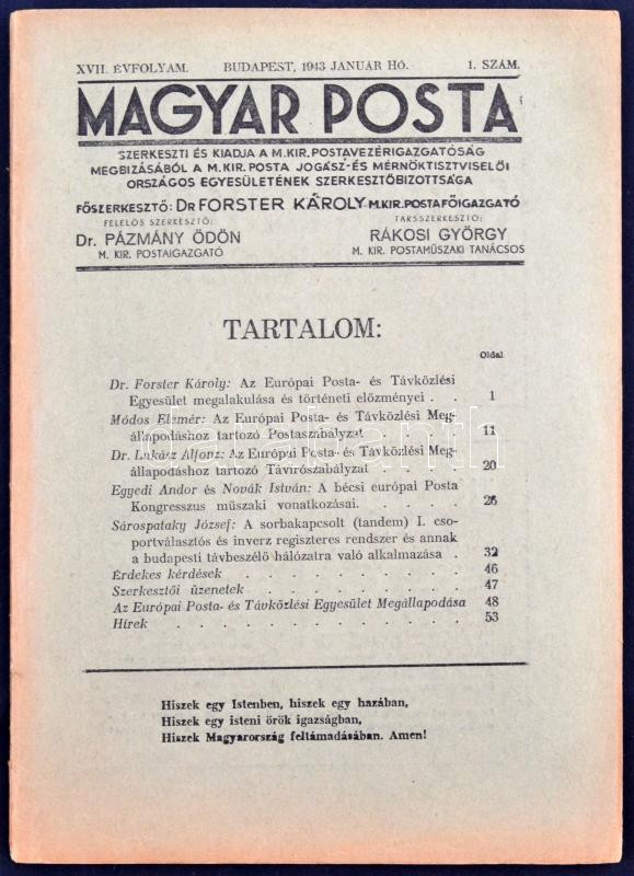 Beschreibung: 1943 A Magyar Posta c. újság első száma, benne az évfolyam tartalomjegyzékével