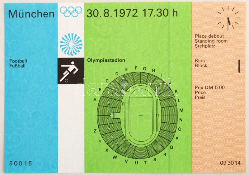 1972 München Olimpiai belépő futball mérkőzésre, szép állapotban / 197... https://www.darabanth.com/de/254-Fernauktion/254.0/Andere-Sammelgebiete/Drucksachen~400010/1972-Munchen-Olimpiai-belepo-futball-merkozesre-szep-allapotban-1972-Munich-Olympic-footb~II1239129