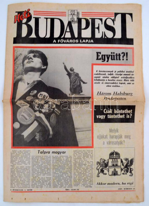 1989 Heti Budapest. A főváros lapja, 1/1 szám. Első szám! 46x32cm https://www.darabanth.com/de/254-Fernauktion/254.0/Andere-Sammelgebiete/Drucksachen~400010/1989-Heti-Budapest-A-fovaros-lapja-11-szam-Elso-szam-46x32cm~II1233344