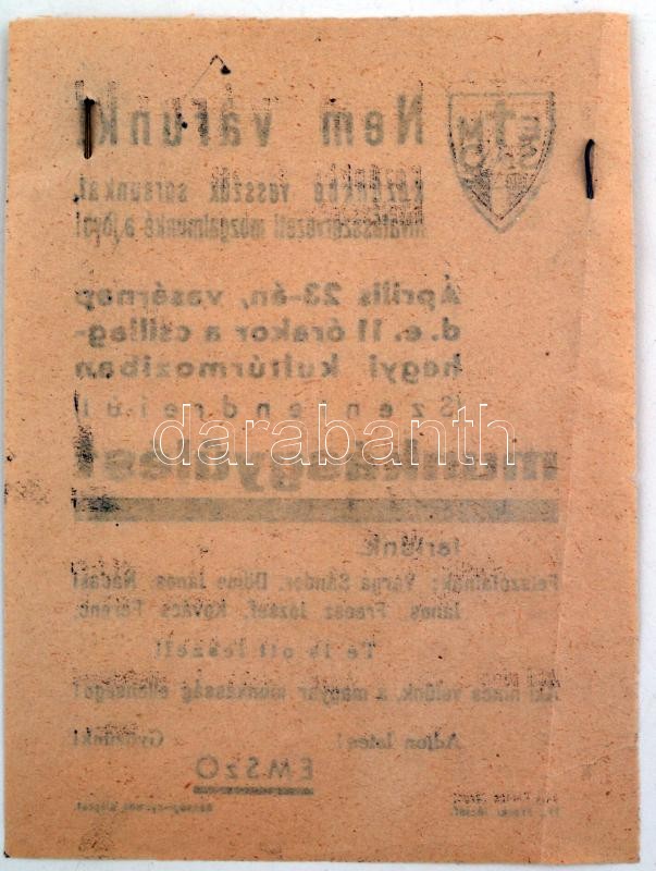 cca 1930-1940 EMSzO (Egyházközségi Munkásszakosztályok) munkásgyűlésre... https://www.darabanth.com/de/254-Fernauktion/254.0/Andere-Sammelgebiete/Drucksachen~400010/cca-1930-1940-EMSzO-Egyhazkozsegi-Munkasszakosztalyok-munkasgyulesre-felhivo-kismeretu~II1238903