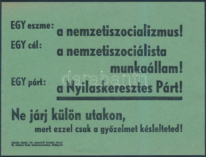 cca 1940 "Egy eszme: a nemzetiszocializmus!" A Nyilaskeresztes Párt rö... https://www.darabanth.com/de/254-Fernauktion/254.0/Andere-Sammelgebiete/Drucksachen~400010/cca-1940-Egy-eszme-a-nemzetiszocializmus-A-Nyilaskeresztes-Part-roplapja-15x12-cm~II1235155