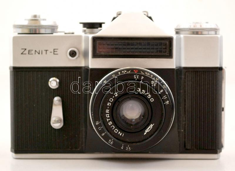 Zenit-E fényképezőgép Industar-50-2-es objektívvel, saját tokjában