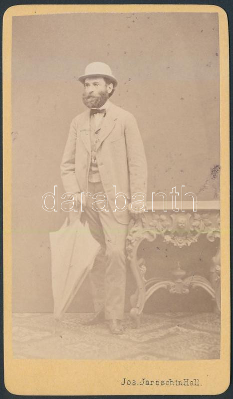 Beschreibung: cca 1860 Halbauer Vilmos (?-1900) pesti telektulajdonos, terménykereskedő, műtermi fotó vizitkártya méretben, 10,5x6 cm