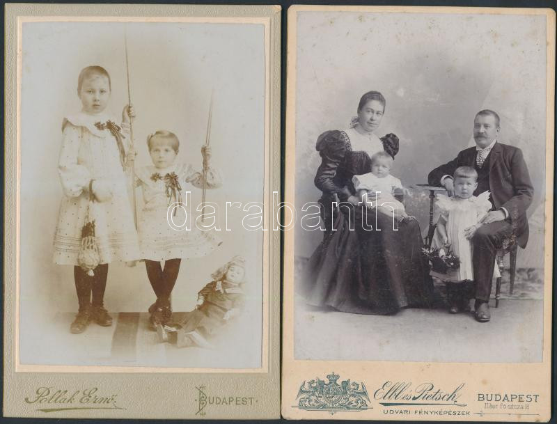 cca 1900, 10db Nagy méretű, kemény hátú családi fotó különböző fényképeszektől: Elbl, Pollák, Mátrai, Jager, Fodor, Kováts, Bruno, Glax, Martinelli, Bunhuber. 10,5x6,5cm