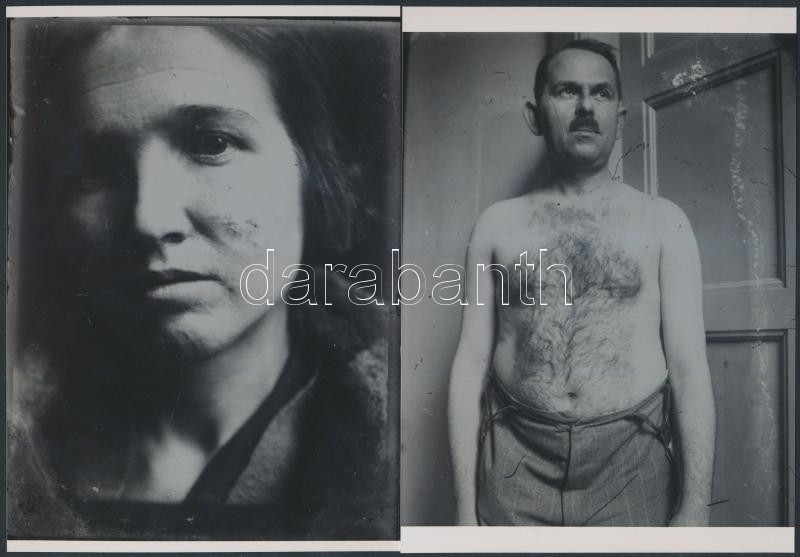 Beschreibung: cca 1910 Orvosi fényképek különféle betegségekről, 18 db régi üveglemez negatívról készült modern nagyítás, 18x13 cm
