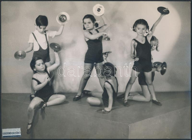 Beschreibung: cca 1935 Leichtner Erzsébet vintage fotója Szentpál Olga gyermek tánccsoportjának tagjairól, matricával jelzett, 17x23 cm