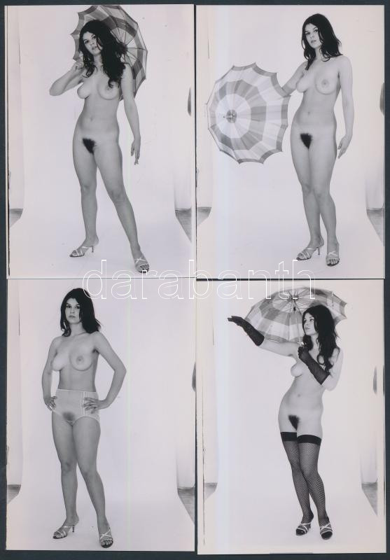 cca 1973 Játék az esernyővel, 7 db finoman erotikus fénykép, korabeli negatívokról készült modern nagyítások, 13x9 cm /