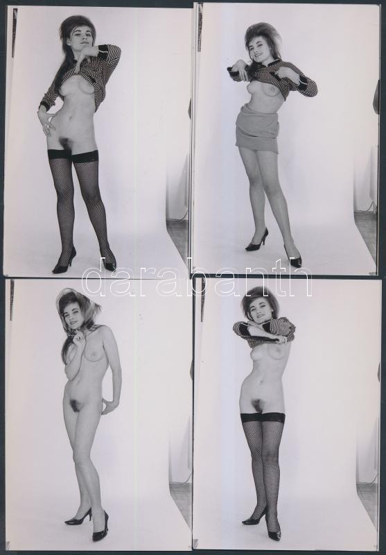cca 1975 Csíkos blúzban kihívó egyéniség, 9 db finoman erotikus fénykép, korabeli negatívokról készült modern nagyítások, 13x9 cm /