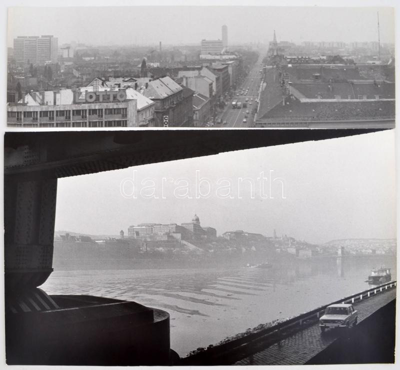 Beschreibung: cca 1980 Giltán Tivadar budapesti városképek, 4 db pecséttel jelzett, feliratozott vintage fotó,12x39 cm és 24x39 cm közötti méretben