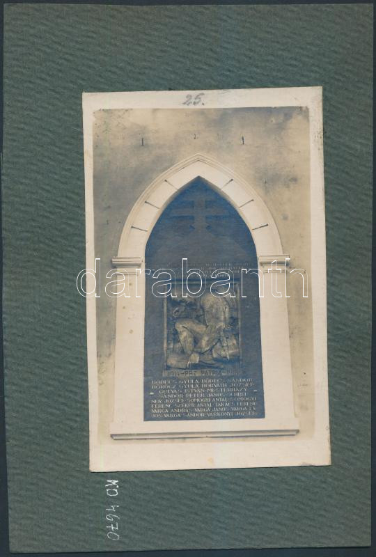 Beschreibung: 1922 Borgáta, Háborús emlékmű, kartonra kasírozott, feliratozott fotó, 14x9 cm