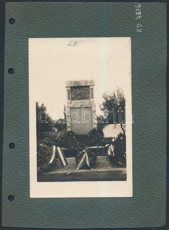 Beschreibung: 1925 Bögöte, Háborús emlékmű, kartonra kasírozott, feliratozott fotó, 14x9 cm