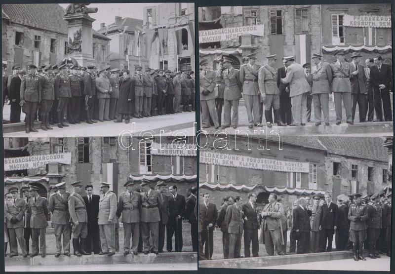 1948 Budapest, Katonai ünnepség a budai várban, jelmondat: Példaképünk a vörös sipkás honvéd, Kossuth, Bem, Klapka honvédei vagyunk, Rózsa György hagyatékában őrzött 28 db negatívról készült modern nagyítás, 9x13 cm
