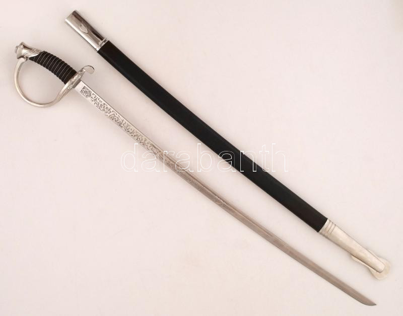 Gazdagon díszített díszkard, a pengén "United States Marines" felirattal, saját hüvelyében, szép állapotban, pengehossz: 71,5 cm, teljes hossz: 84,5 cm / Ornated honorary sword with "United States Marine" inscription on balde, in its own scabbard, in a good condition, blade length: 71,5 cm, full length: 84,5 cm