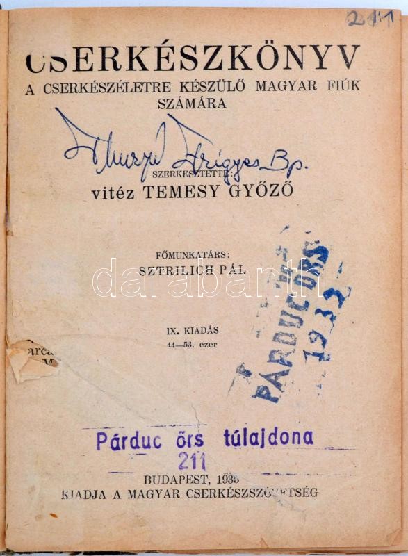 Cserkészkönyv a cserkészéletre készülő magyar fiúk számára. Szerk.: Te... https://www.darabanth.com/de/254-Fernauktion/254.0/Andere-Sammelgebiete/Pfadfinder~400002/Cserkeszkonyv-a-cserkeszeletre-keszulo-magyar-fiuk-szamara-Szerk-Temesy-Gyozo-Bp-C3~II1233745