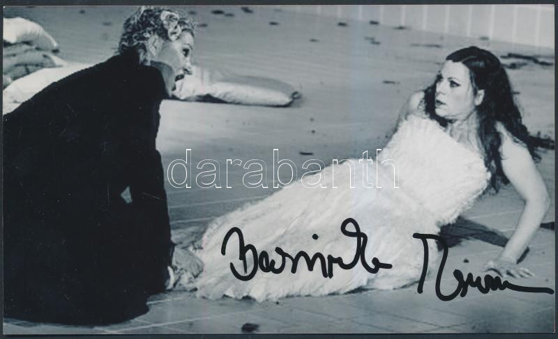 Beschreibung: Bazsinka Zsuzsanna (1965-) magyar opera-énekesnő (szoprán) saját kezű aláírása egy a művésznőt ábrázoló fotón, 9x14cm