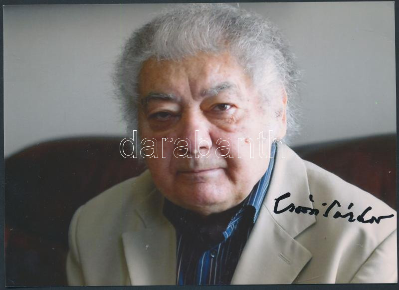 Csoóri Sándor (1930-) a Nemzet Művésze címmel kitüntetett, kétszeres Kossuth-díjas és kétszeres József Attila-díjas magyar költő, esszéíró, prózaíró, politikus saját kezű aláírása fotón. Szép állapotban, cca 12x18cm
