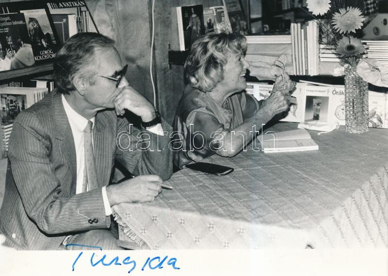 Beschreibung: Turay Ida (1907-1997) magyar színésznő, érdemes művész. Aláírása az és Párkány Lászlót ábrázoló, képen. 13x18cm