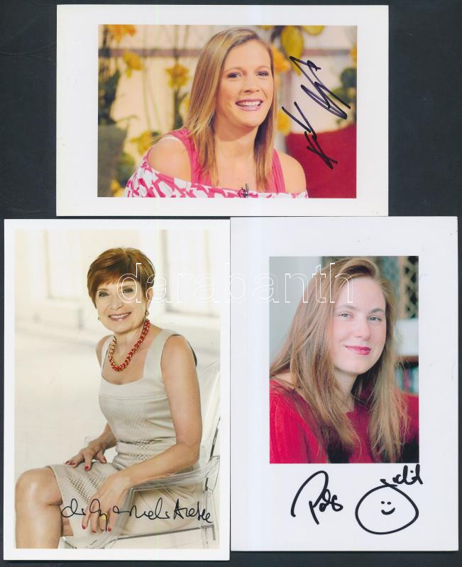 Vegyes saját kezű aláírás tétel fotón, nyomtatványon, 3db: Gyarmati Andrea (1954-) olimpiai ezüstérmes, Európa-bajnok magyar úszó; Kovács Ágnes (1981-) olimpiai bajnok magyar úszó; Polgár Judit (1976) magyar sakkozó, nemzetközi nagymester. Szép állapotban, cca 15x10cm