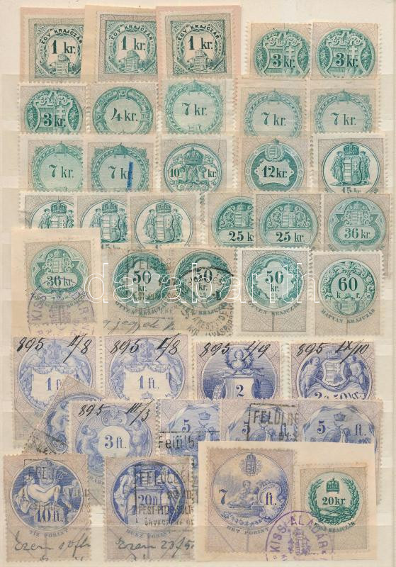 Beschreibung: 1891 Okmánybélyeg sor 1kr-20Fl 39 db részben kivágáson