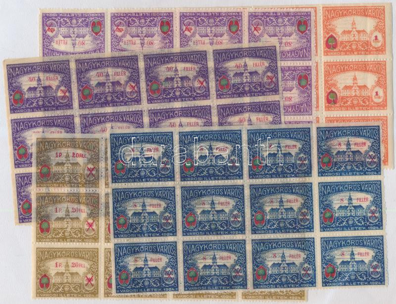 Beschreibung: Nagykőrös városi illeték bélyegek 5 db tizenkettes tömb felülnyomásokkal