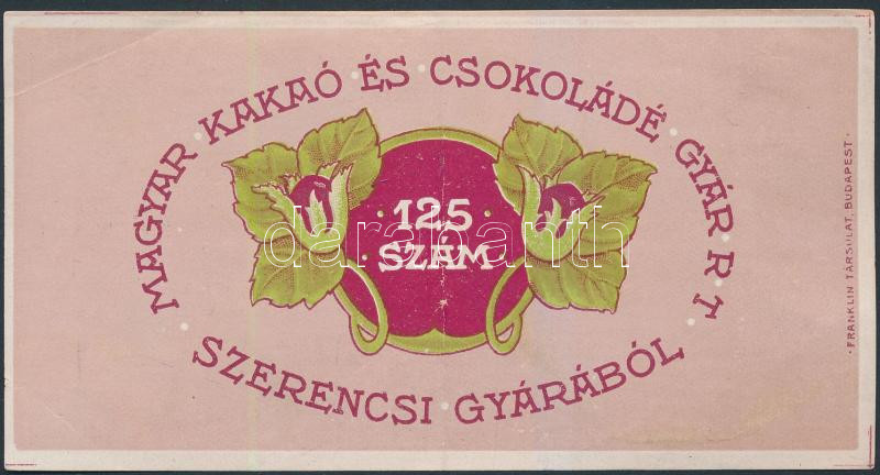 Díszes csokipapír, Magyar Kakaó- és Csokoládégyár Rt., Szerencs, 125. ... https://www.darabanth.com/de/254-Fernauktion/254.0/Andere-Sammelgebiete/Werbungen~400034/Diszes-csokipapir-Magyar-Kakao-es-Csokoladegyar-Rt-Szerencs-125-szam-Bp-Franklin~II1233219