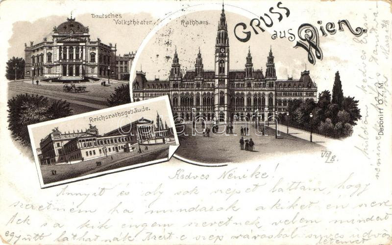Beschreibung: 1895(!) Vienna, Wien; Deutsches Volkstheater, Rathaus, Reichsratsgebaude / theatre, town hall, litho (EK)