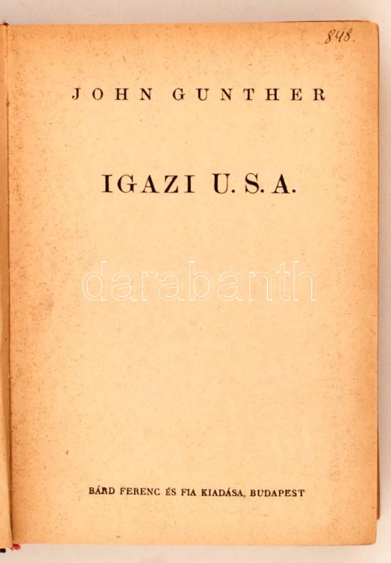 John Gunther: Igazi U.S.A. Bp., én. Bárd Ferenc és Fia. 468 l. Egészol... https://www.darabanth.com/de/255-Fernauktion/255.0/Andere-Sammelgebiete/Bucher-Geschichte~600032/John-Gunther-Igazi-USA-Bp-en-Bard-Ferenc-es-Fia-468-l-Egeszoldalas-terkepekkel-KiadC3~II1239486