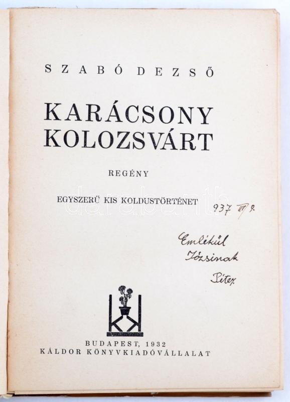 Szabó Dezső: Karácsony Kolozsvárt. Bp., 1932, Káldor Könyvkiadóvállala... https://www.darabanth.com/de/255-Fernauktion/255.0/Andere-Sammelgebiete/Bucher-Sonstige-Raritaten~600042/Szabo-Dezso-Karacsony-Kolozsvart-Bp-1932-Kaldor-Konyvkiadovallalat-Papirkotesben-a~II1217416