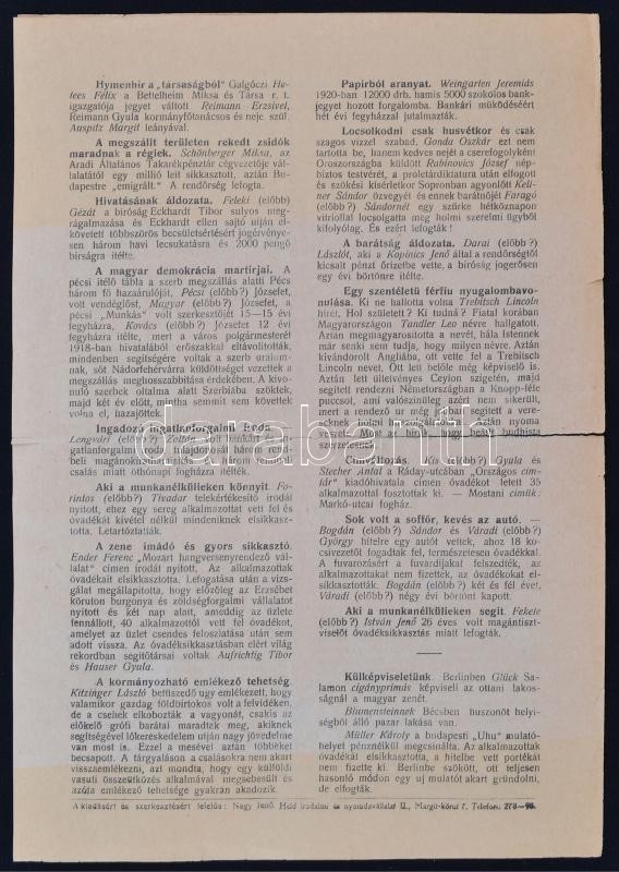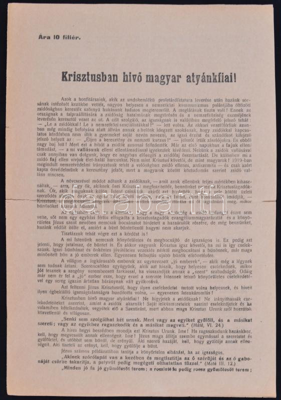 cca 1928 a Nemzeti Tömörülés Pártja antiszemita röplapja, a hajtások m... https://www.darabanth.com/de/255-Fernauktion/255.0/Andere-Sammelgebiete/Drucksachen~600029/cca-1928-a-Nemzeti-Tomorules-Partja-antiszemita-roplapja-a-hajtasok-menten-szakadasokkal-~II1248482