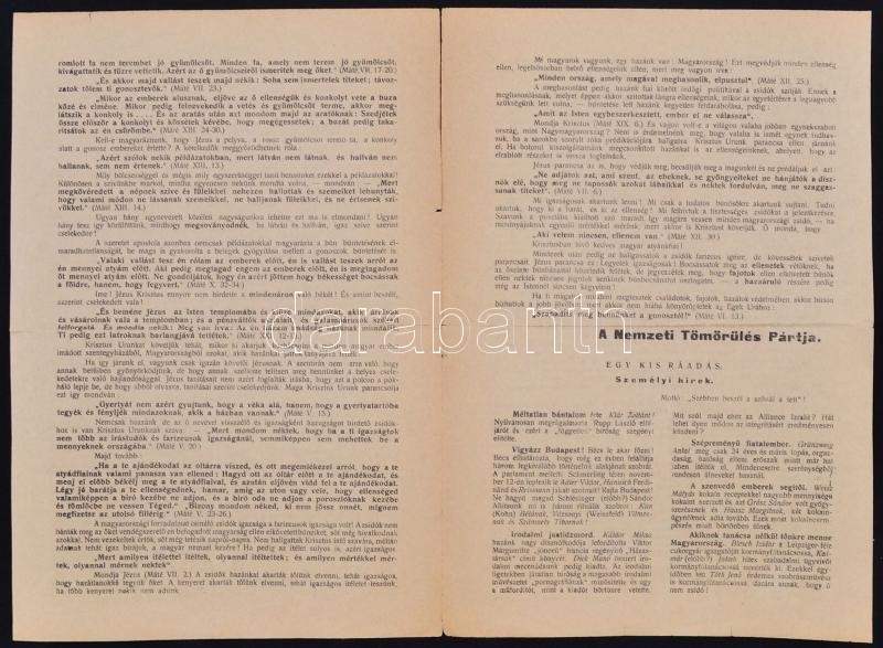 Beschreibung: cca 1928 a Nemzeti Tömörülés Pártja antiszemita röplapja, a hajtások mentén szakadásokkal, 4 p.