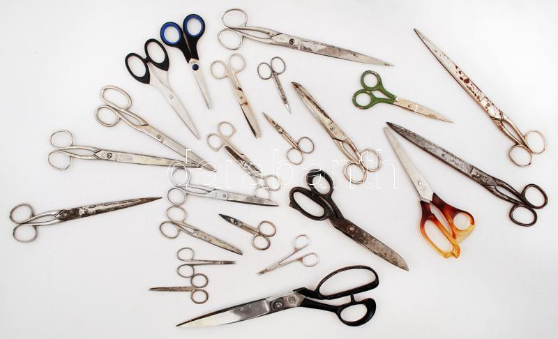 24 db különböző méretű fém olló, több közülük rozsdás https://www.darabanth.com/de/255-Fernauktion/255.0/Andere-Sammelgebiete/Flohmarkt~600010/24-db-kulonbozo-meretu-fem-ollo-tobb-kozuluk-rozsdas~II1248015