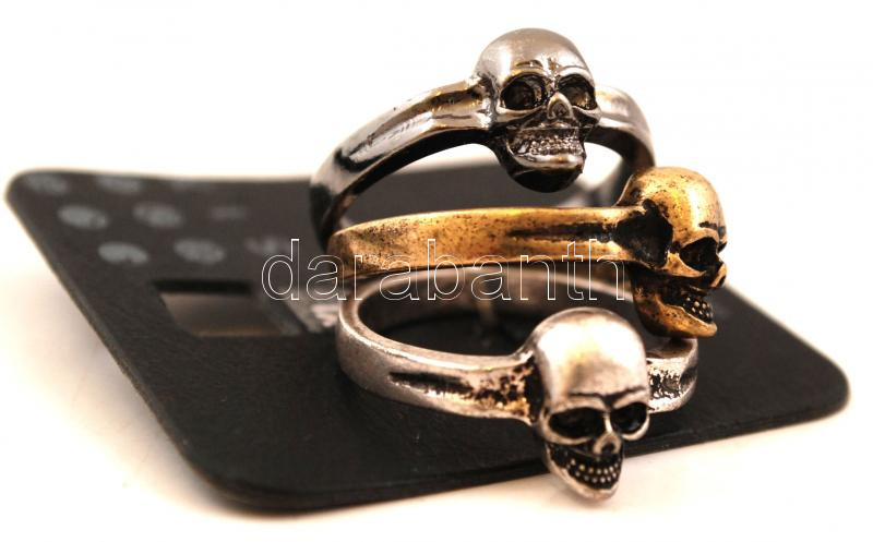 Beschreibung: Férfi divatgyűrű,halálfejes, fém, eredeti bontatlan csomagolásban,3db-os, méret:XL