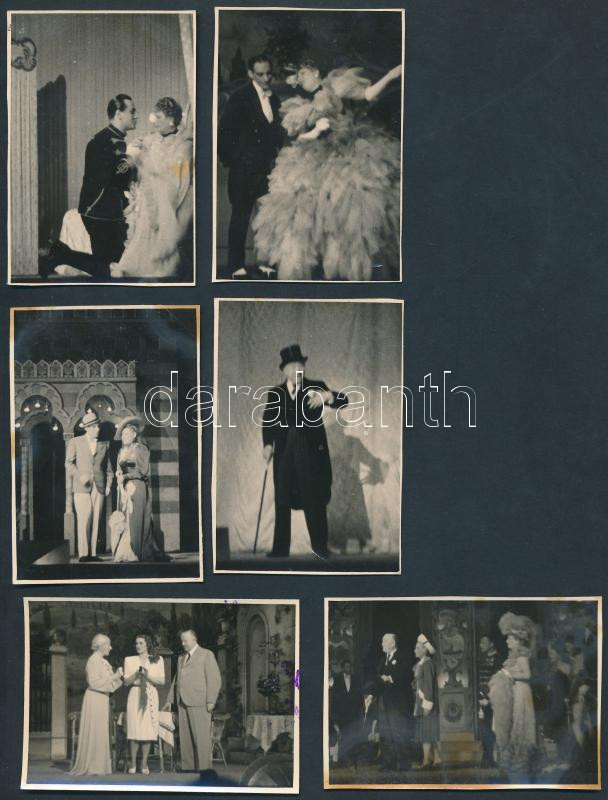 Beschreibung: 1943 "Egy boldog pesti nyár" színpadi előadása(Latabár Kálmán, Somogyi Nusi, Csortos Gyula, Honthy Hanna), hátoldalon feliratozott amatőr fotók, 6 db, 5,5x8 cm
