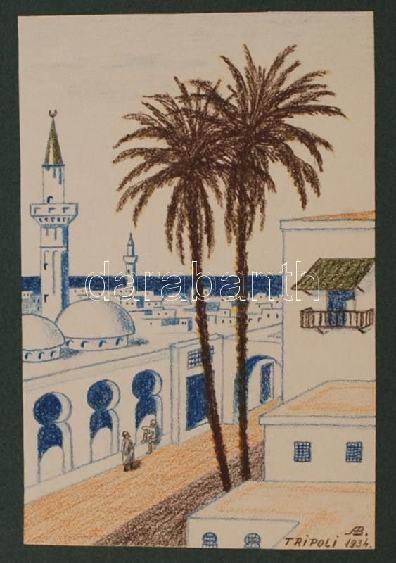 AB jelzéssel: Tripoli. Kréta, papír, 24×16 cm https://www.darabanth.com/de/255-Fernauktion/255.0/Andere-Sammelgebiete/Gemalde-und-Grafiken~600049/AB-jelzessel-Tripoli-Kreta-papir-24C39716-cm~II1247748