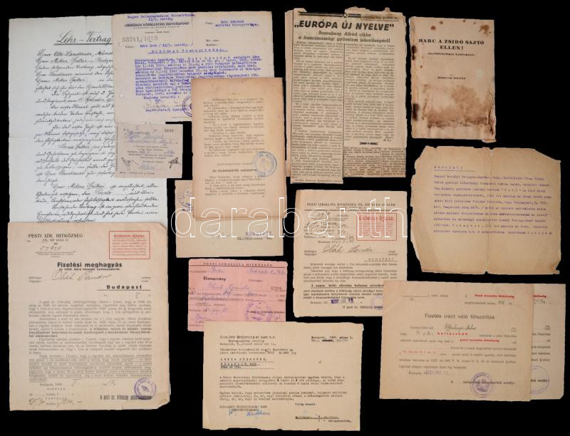 cca 1910-50 Vegyes böngészni való judaika témájú iratok, okmányok, nyo... https://www.darabanth.com/de/255-Fernauktion/255.0/Andere-Sammelgebiete/Judaica~600025/cca-1910-50-Vegyes-bongeszni-valo-judaika-temaju-iratok-okmanyok-nyomtatvanyok-ect-cca-5~II1241098