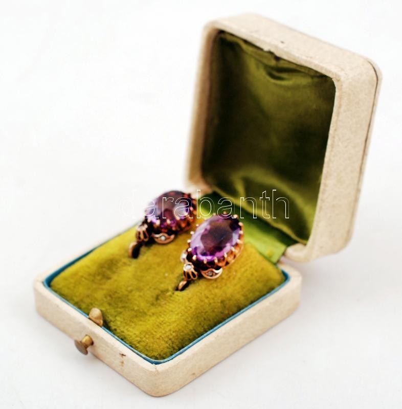 Arany 14K (Au.) fülbevaló pár, csiszolt ametiszt kővel, jelzett, erede... https://www.darabanth.com/de/255-Fernauktion/255.0/Andere-Sammelgebiete/Juwelen~600044/Arany-14K-Au-fulbevalo-par-csiszolt-ametiszt-kovel-jelzett-eredeti-dobozaban--brutto-7~II1234470