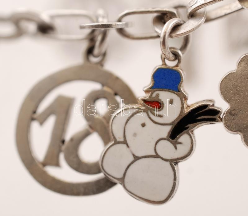 Ezüst(Ag) karkötő sok apró kis medállal, jelzett, br: 18,8 g https://www.darabanth.com/de/255-Fernauktion/255.0/Andere-Sammelgebiete/Juwelen~600044/EzustAg-karkoto-sok-apro-kis-medallal-jelzett-br-18-8-g~II1244788