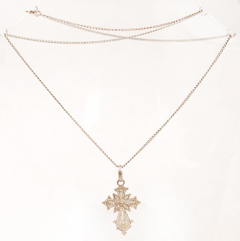 Beschreibung: Ezüst(Ag) lánc kereszt alakú medállal, jelzett, h: 50 cm, 4,2 g
