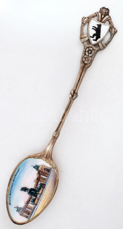 Beschreibung: XIX. sz vége: Berlin ezüst kanál, zománcfestett képpel és címerrel / Vintage silver spoon. Berlin, Germany 13,7 g
