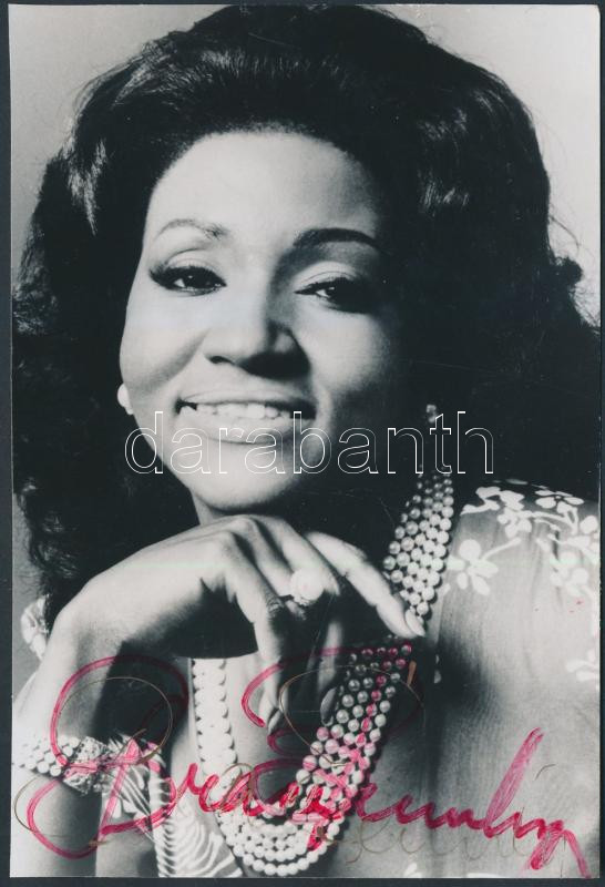 Beschreibung: Grace Melzia Bumbry(1937-) amerikai opera-énekesnő, mezzoszoprán aláírása az őt ábrázoló fotón / autograph signature