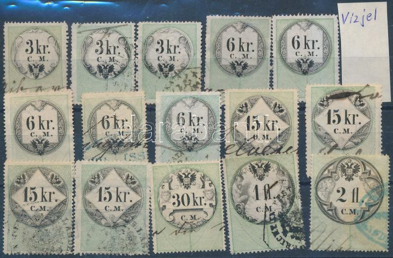 1854 15 db CM-es okmánybélyeg / 15 document stamps https://www.darabanth.com/de/255-Fernauktion/255.0/Andere-Sammelgebiete/Stempelmarken~600014/1854-15-db-CM-es-okmanybelyeg-15-document-stamps~II1247901