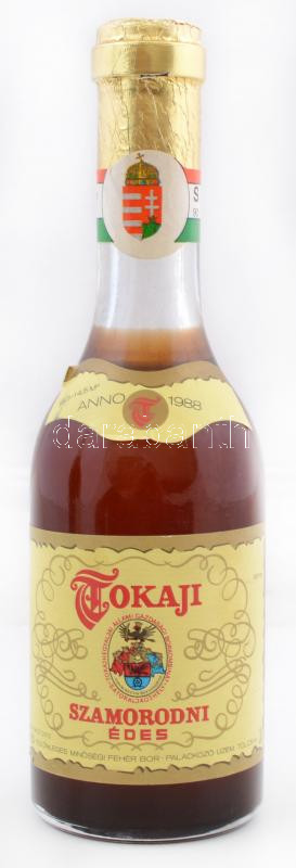 1988 Tokaji szamorodni édes fehérbor, 0,25 l https://www.darabanth.com/de/255-Fernauktion/255.0/Andere-Sammelgebiete/Vintage-Weine~600012/1988-Tokaji-szamorodni-edes-feherbor-0-25-l~II1242772