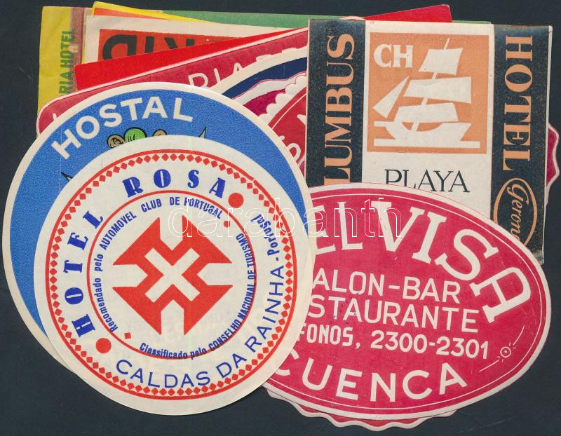 Beschreibung: 20 db spanyol bőröndcímke(Hotel Continental, Hotel Suizo, Hotel Visa, Hotel Ingles, stb.) / luggage labels
