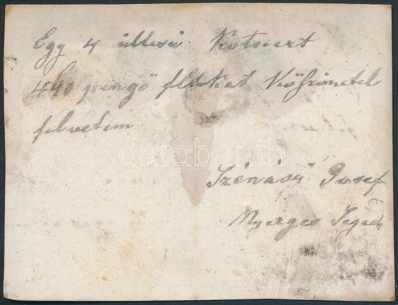 Beschreibung: cca 1860? Hercz Ferencz nyerges mester Pesten, régi reklámkártya, foltos, hátulján kézzel írt, magyar nyelvű elismervénnyel
