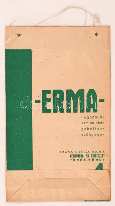 cca 1940 ERMA függönyök reklámgrafikával díszített papír reklámtáska https://www.darabanth.com/de/255-Fernauktion/255.0/Andere-Sammelgebiete/Werbungen~600019/cca-1940-ERMA-fuggonyok-reklamgrafikaval-diszitett-papir-reklamtaska~II1247340