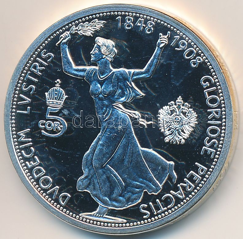 DN "Osztrák-Magyar Monarchia pénzei utánveretben - 1908. 5 Corona" ezü... https://www.darabanth.com/de/255-Fernauktion/255.0/Numismatik/Moderne-Beischlage-Fantasiemunzen~21/DN-Osztrak-Magyar-Monarchia-penzei-utanveretben--1908-5-Corona-ezustozott-Cu-Ni-emlekere~II1247297