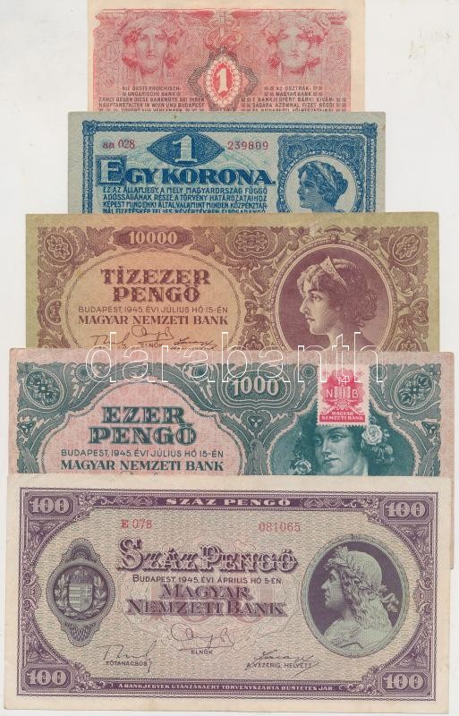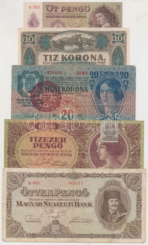 23db vegyes korona és pengő bankjegy T:vegyes (közte I is) https://www.darabanth.com/de/255-Fernauktion/255.0/Numismatik/Ungarische-Banknoten~9/23db-vegyes-korona-es-pengo-bankjegy-Tvegyes-kozte-I-is~II1240434