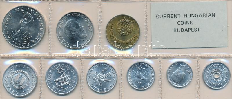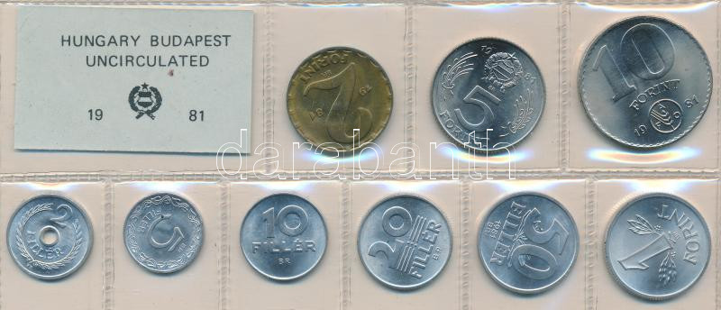 1981. 2f-10Ft 9db klf, érmés forgalmi sor fóliatokban T:1 https://www.darabanth.com/de/255-Fernauktion/255.0/Numismatik/Ungarische-Munzen-und-Munzen-mit-ungarischem-Munzzeichen~10/1981-2f-10Ft-9db-klf-ermes-forgalmi-sor-foliatokban-T1~II1243130