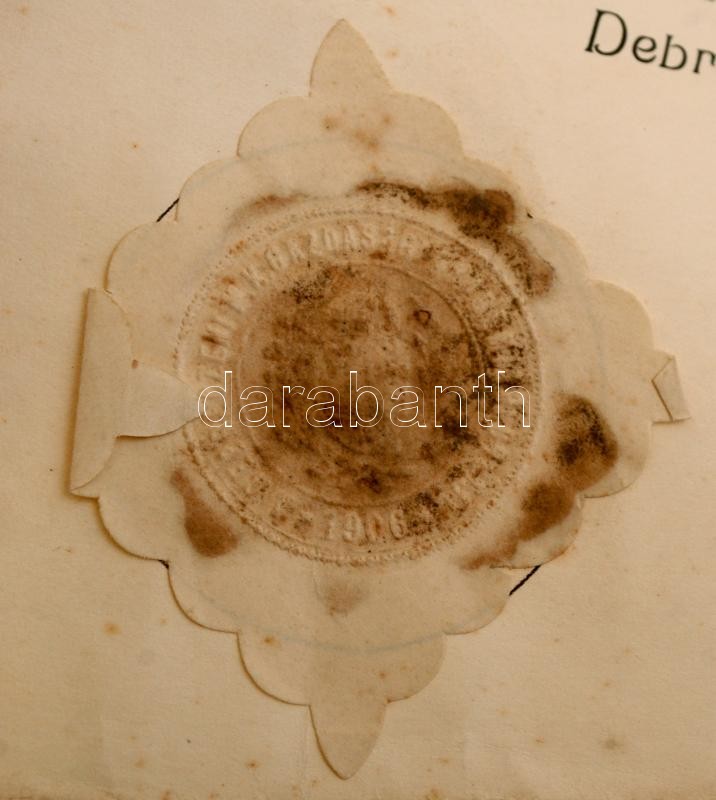Beschreibung: 1930 Debrecen, A Gazdasági Akadémia által kiállított okleveles gazdának minősítő oklevél, rajta a m.kir. gazdasági akadémia igazgatójának aláírásával